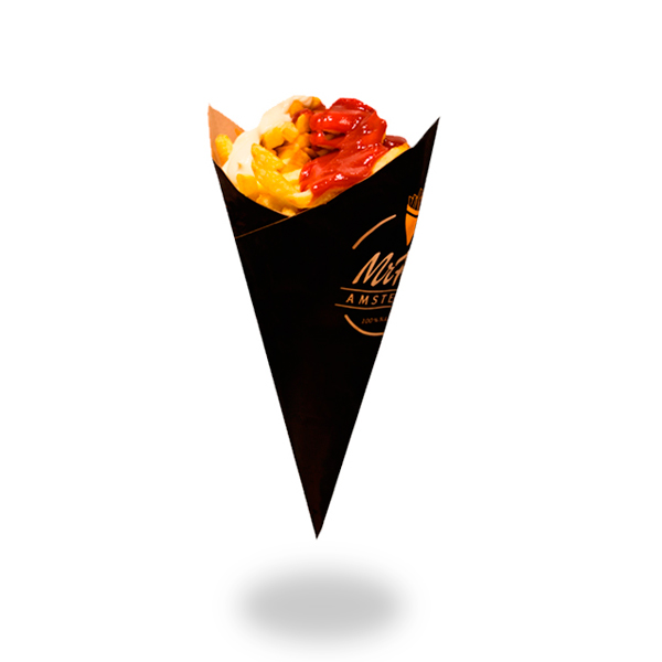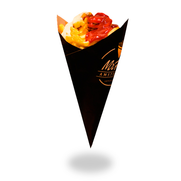 De Frikandel is een 100% origineel product uit de Nederlandse keuken. Een basis uitgewerkt van gehakt en in de vorm van worst. Het wordt geserveerd met Mr Frit Amsterdam® Speciaalsaus bestaande uit ketchup-currysaus, mayonaise en fijngesneden ui.